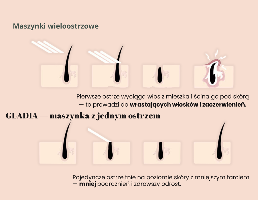 Wieloostrzowe wyrywają i tną pod skórą, co sprzyja krostkom i zaczerwienieniom.